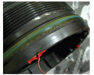 Extrusion is the single most common cause of catastrophic seal failure. Seals begin to extrude when the exposed heel of the seal is forced through clearance gaps in the seal grooves from a variety of reasons. There are several ways to minimize or even prevent extrusions through better machine design or seal design. Below are two:
