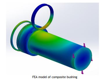 Die FEA-Analyse der Spannungsverteilung für Bronze- vs. Komposit zeigt jedoch, dass sich die Spannungen in Kompositbuchsen gleichmäßiger verteilen. Dies führt zu einer geringeren Spannungsspitze, was wiederum die Wahrscheinlichkeit von Ausfällen durch hohe Beanspruchung reduziert.